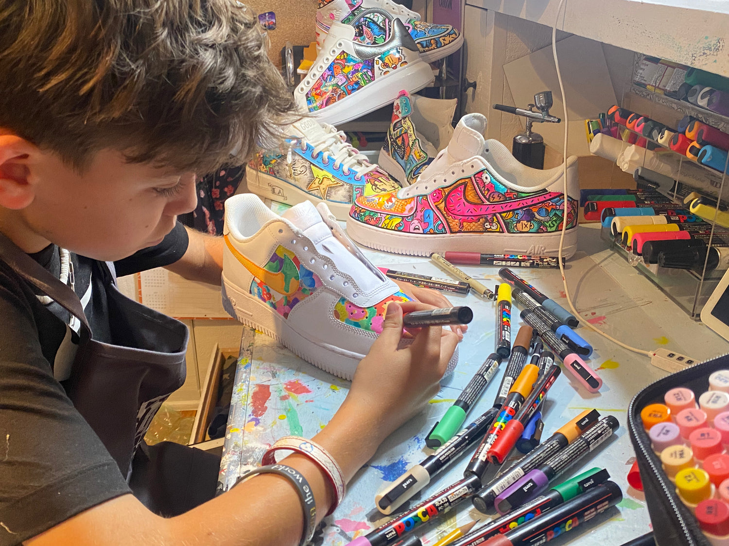 LA's next young breakout artist, carving out his own space by transforming everyday items into vibrant, meaningful statements. Every piece starts with a simple passion for creating and ends as a wearable, hangable work of art.